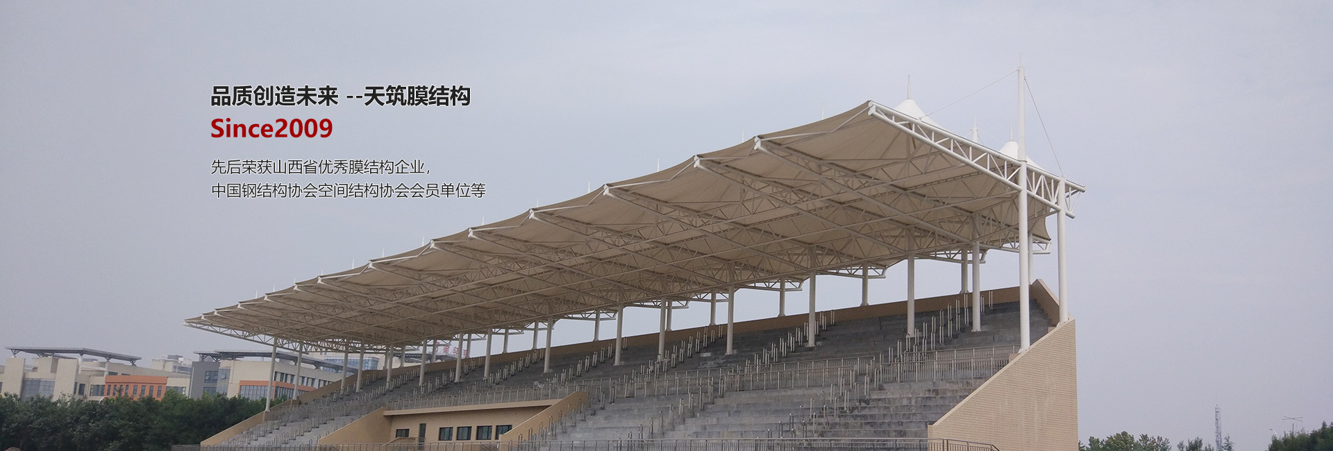 太原天筑膜結(jié)構(gòu)技術(shù)有限公司主要從事膜結(jié)構(gòu)工程的方案設(shè)計、結(jié)構(gòu)設(shè)計、靜動力計算分析、膜材的裁剪設(shè)計、膜材的加工制作安裝、鋼構(gòu)件的設(shè)計加工整體安裝及使用維護(hù),集科研開發(fā)與制作安裝為一體的科研生產(chǎn)型企業(yè)。服務(wù)范圍涉及電動車/自行車車棚、汽車停車棚、廣場公園景觀張拉膜、新能源充電樁膜結(jié)構(gòu)雨棚、體育場看臺膜結(jié)構(gòu)、加油站收費(fèi)站膜結(jié)構(gòu)大棚、表演舞臺膜結(jié)構(gòu)雨棚、廊道遮陽棚、永久性膜結(jié)構(gòu)建筑遮陽棚、污水池膜結(jié)構(gòu)封閉、充氣膜等膜結(jié)構(gòu)工程的設(shè)計、制作加工安裝、售后維修服務(wù)。公司立足太原,輻射華北、華中地區(qū)數(shù)十省,是華北地區(qū)專業(yè)性、規(guī)模型的膜結(jié)構(gòu)工程企業(yè)之一。公司成立以來,組織承建了520余項近36萬平方米的膜結(jié)構(gòu)工程……